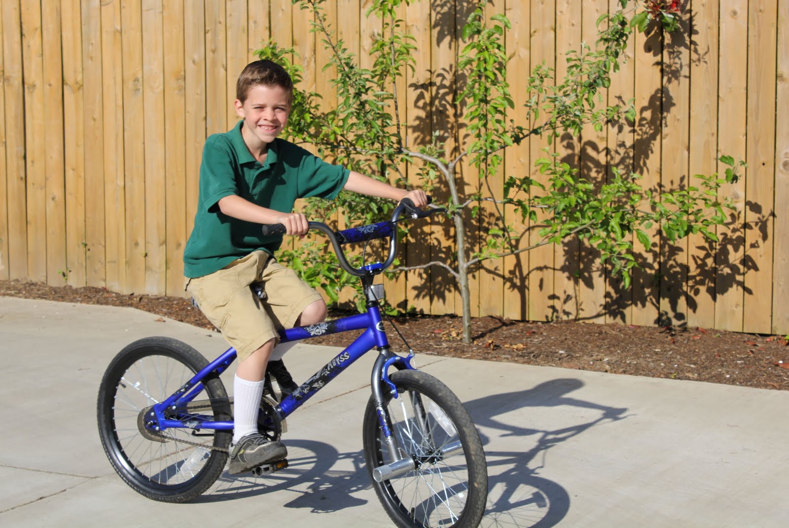 Riding his new bike to school, made Kaden one happy kid!